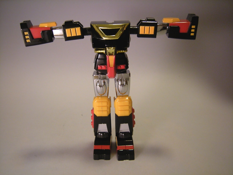 Per quanto riguarda gli snodi, oltre a quello della testa di cui si é già discusso, il modello é dotato di snodo a scatto solo per la rotazione delle braccia. Tutti gli altri snodi sono ad attrito. Quindi abduzione e torsione delle braccia, flessione del gomito, rotazione del busto, rotazione ed estensione delle gambe, flessione delle cosce, rotazione e inclinazione dei piedi. Mancano la flessione plantare e il sollevamento delle spalle, dimostrando quindi che il Gyakuten-Oh ne era provvisto solo per questioni di trasformazione. Sempre per questo motivo le spalle del Sankan-Oh possono ripiegarsi all'indietro. E' uno snodo che in fase di posizionamento ha un'utilità minima, tuttavia bisogna farne notare un grave difetto: Le spalle non hanno alcun fermo, percui ruotano liberamente all'indietro al minimo tocco. Dato che dietro di loro si trovano le ali del Dangan Booster, appena i due elementi entrano in contatto provocano il distaccamento della testa del robot.