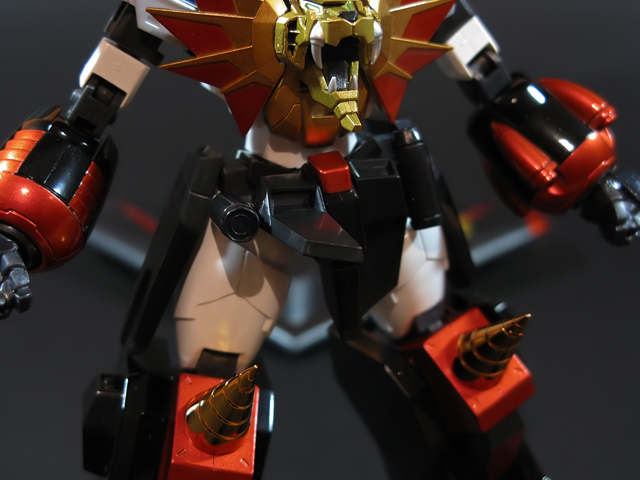Verniciatura buona e ben stesa su tutto il modello e sugli accessori, nella mia copia non ho riscontrato sbavature o difetti di nessun genere, molto bello il logo GGG sulle ali proprio come nell'anime.