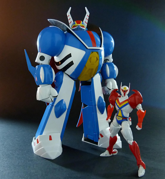 Quello che salta istantaneamente all’occhio, è la diversità di trattamento dedicata ai due soggetti, abbiamo cioè da un lato un Tekkaman che, pur essendo in teoria il protagonista dell’anime, è decisamente molto piccolo, e dall’altro un Pegas che regna sovrano per dimensioni all’interno del packaging, anche se rappresentava il comprimario di lusso della situazione. Comprensibilmente molti storceranno il naso davanti a questa scelta di CM’S, scelta che tuttavia le ha consentito di mantenere la scala tra i due e un perfetto affiancamento con il Tekkaman Blade with Pegas di Bandai (serie SPEC). Inoltre, a me non dispiace l’idea che una figure umanoide sia più piccola dei robottoni che invadono le nostre vetrine, ma qui, ovvio, si entra nei gusti personali.