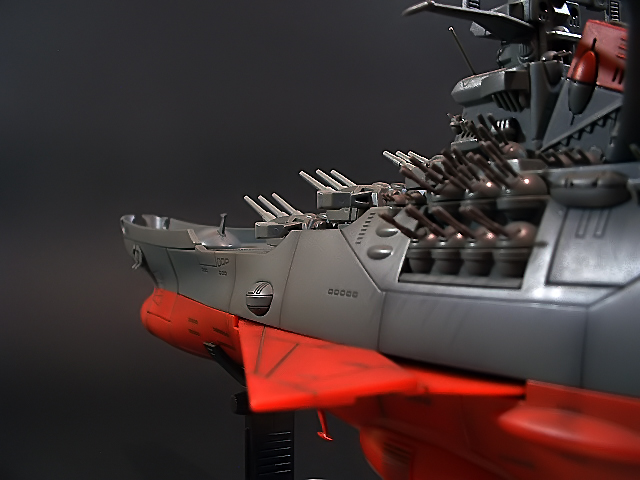 La Yamato è lunga 42 centimetri, è costruita quasi totalmente in plastica, le uniche parti in metallo sono le 5 batterie di cannoni poste sul ponte della nave, il fumaiolo centrale ed il reattore principale dei motori. Questo però non vuol dire che il modellino non goda di ottime rifiniture, esteticamente è molto bello e non presenta imperfezioni di nessun genere. La verniciatura è stata leggermente sfumata in corrispondenza delle pennellature incise sullo scafo della nave, in questo modo si è tolto l’effetto “piatto” che una colorazione liscia avrebbe dato all’intero lavoro.