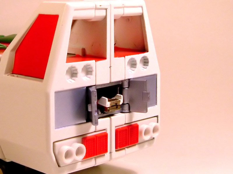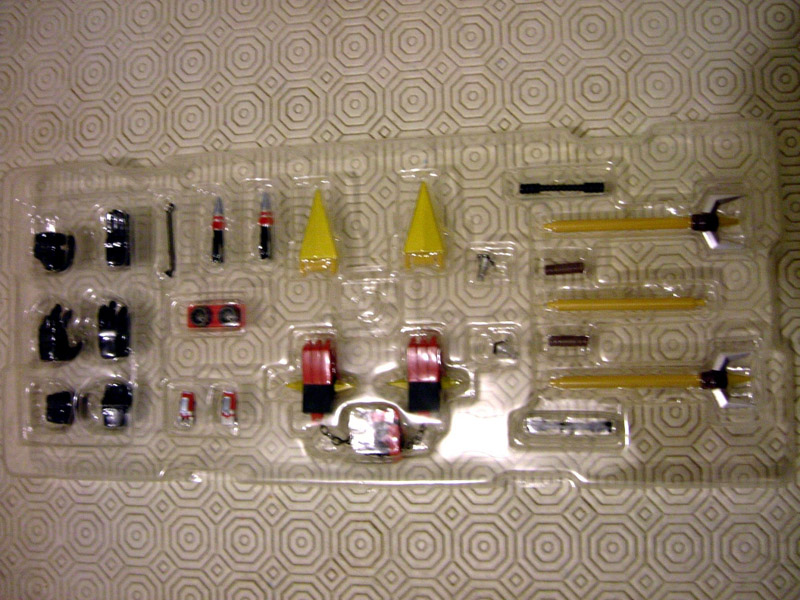 - Un astuccio in cartoncino contenente la base espositiva del Trancer e i componenti per assemblare l'espositore delle armi del robot.