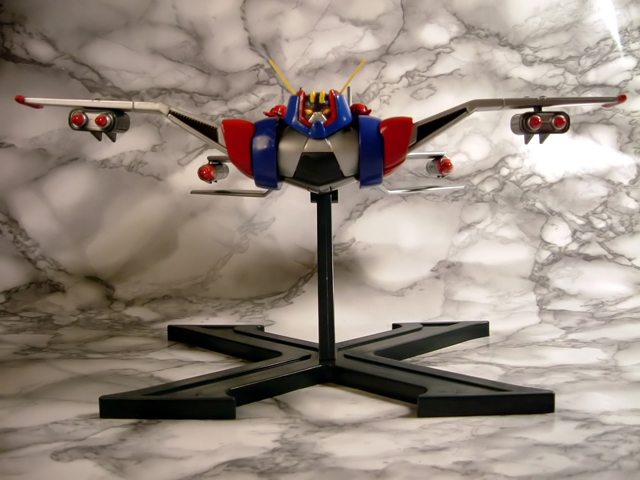A cavallo tra il 1976 ed il 1977 Tokyo Channel 12 trasmetteva le 36 puntate di un nuovo anime robotico prodotto dalla Knack Animation a firma del Maestro Go Nagai e di Gosaku Ota dal titolo Groizer X. Sempre nota come una delle opere minori di Nagai, Groizer X (noto anche come Gloyzer X o Gloizer X), narra le vicende dell'enorme robot convertibile in aereo che, pilotato dal terrestre Joe Kasaka e dalla ragazza aliena Rita, combatte contro la razza aliena dei Gailariani che intendono conquistare la terra proprio a partire dal Giappone. Giunto in Italia nel 1981, quando Canale 5 ha trasmesso per intero la serie, l'anime non ha lasciato certo lo stesso segno di cartoni come i vari Mazinga, Atlas UFO Robot o Jeeg, ma si è comunque ricavato quella piccola nicchia nella memoria di noi bambini degli anni 70 per cui, quando poco più di un paio di anni fa Yamato ha annunciato la riproduzione del Groizer X come modello diecast per la serie "The GN-U ultimate super robot selection", ci siamo comunque trovati di fronte ad una immagine a noi familiare. Il modello, immesso sul mercato nella sua prima versione coi colori tipici dell'anime a fine 2007, è stato fatto seguire a distanza di pochi mesi da una seconda, improbabile variante a tiratura limitata con parti verdi ispirata alla colorazione che caratterizza il mecha nel manga su richiesta del noto shop online nipponico Hobby Link Japan. Complice lo scarso successo inizialmente riscosso dal modello ed il conseguente, drastico calo di prezzi subìto con il passare del tempo,alcuni mesi fa, anche sotto la spinta della positiva esperienza chiamata Danguard Yamato, mi sono deciso ad acquistare una copia di questo gokin, con verniciatura rigorosamente normal. Passo quindi a riferirvi la mia personalissima opinione sul gokin....