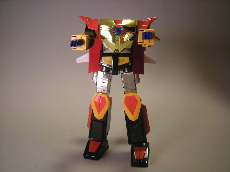 Gyakuten-Oh é sicuramente - sia come fattura che come studio ingegneristico - uno dei migliori modelli di CM's. Il robot é molto pesante e metalloso, nonché dotato di snodi e posabilità discreta. Va detto che probabilmente questa posabilità é semplicemente il risultato della presenza degli snodi necessari alla trasformazione, e ingegneriosticamente perfettibili. Per fare un esempio, sarebbe stato molto più efficace per l'esposizione se lo snodo a sfera dei piedi fosse stato realizzato in modo da poter essere esteso, aumentando l'inclinazione degli stessi. Questo a voler essere pignoli. Ad ogni modo si tratta di un oggetto davvero paragonabile ai primi Soul of Chogokin di Bandai (d'altronde i vari GX01 e GX02 originali non facevano molto movimenti in più). Se avete l'occasione di comprarlo, non tiratevi indietro. Ne rimarrete di sicuro soddisfatti. Ovviamente, come fatto notare, ci sono diversi dettagli che potevano essere realizzati meglio, ma nel complesso si tratta di un modello che convince davvero.
