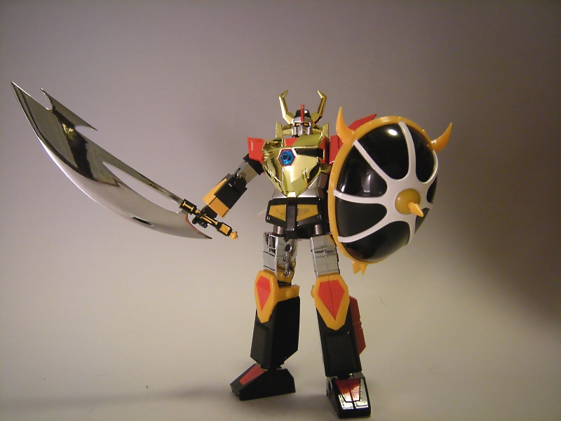 Gyakuten-Oh é il robot titolare della serie Gyakuten Ippatsuman del 1982, sesta incarnazione delle Time Bokan. Temporalmente segue direttamente Yattodetaman (in Italia Calendarman) e ne riprende alcuni schemi, come per l'appunto la presenza di un vero robot gigante dall'aspetto umanoide in luogo delle buffe macchine viste in Yattaman e gli altri. La serie ruota attorno alle vicende della compagnia Time Lease, che effettua consegne a domicilio in ogni dove e in ogni epoca, contrastata dalla compagnia avversaria Sharekobe Lease. Letteralmente Gyakuten-Oh significa "il re della rimonta". Rimonta va inteso col significato prettamente sportivo, difatti gyakuten indica il punto con cui si capovolgono le sorti di un incontro. Di questo robot fu la Takatoku a produrre all'epoca una versione standard e una deluxe - più altri mecha della serie -, mentre la sua incarnazione moderna dedicata al mercato dei collezionisti é opera di CM's Corporation, che lo include nella linea Brave Gokin assegnandogli il numero 10. Un dettaglio da fare notare é che CM’s si ispira idealmente proprio al modello della Takatoku per la colorazione, anche se non pedissequamente. Il torace del robot é color oro cromato in luogo del semplice giallo, ma corna e ginocchia non seguono lo schema del vintage. Il soggetto qui recensito é l’originale di settembre 2007. A questo sono seguiti il Metallic ad ottobre dello stesso anno e una ristampa nell’aprile 2009 (avente come extra una miniatura di metallo di Ippatsuman).