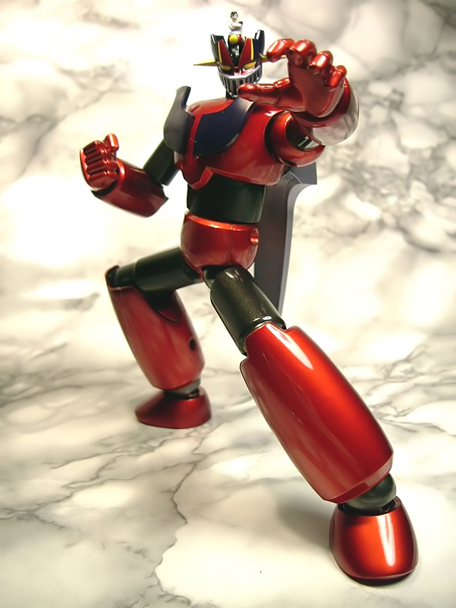 - due blister in plastica trasparente impilati l'uno sull'altro, il primo contenente la basetta espositiva e la rampa applicabile sulla schiena del robot, il secondo contenente due avambracci, due sistemi sparanti per la simulazione del rocket punch, due avambracci adattabili a questi ultimi, due paia di mani (un paio chiuse a pugno ed un paio a dita aperte e piegate), le due moto agganciabili alla testa del robot, una pilotata da Kenzo Kabuto e l'altra pilotata da Tetsuya.